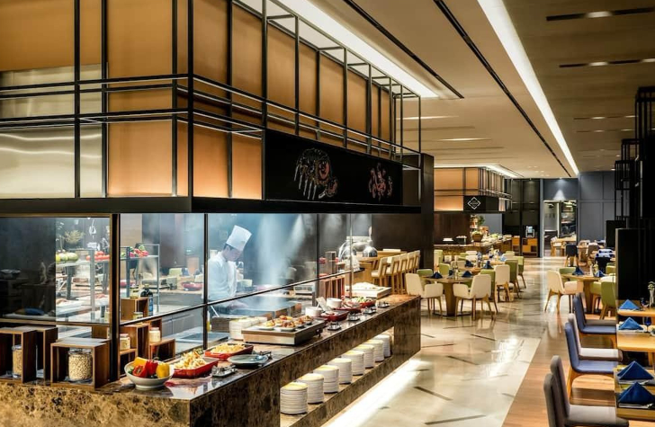 푸드 익스체인지는 조식, 중식, 석식 모두 뷔페식으로 제공되는 레스토랑으로, 신선한 재료와 고급스러운 맛으로 유명합니다. 조식은 06:30 - 10:00, 중식은 11:30 - 14:30, 석식은 18:00 - 21:30 동안 이용 가능합니다. 가격은 조식 성인 60,500원, 어린이 35,000원 / 중식 성인 115,000원, 어린이 58,000원 / 석식 성인 130,000원, 어린이 65,000원입니다.